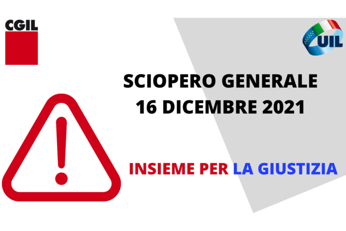 Pertanto, avendo ricevuto dai propri rispettivi organismi il mandato pieno a dare continuità alla mobilitazione, le Segreterie confederali nazionali di Cgil e Uil hanno proclamato lo sciopero generale di 8 ore per il prossimo 16 dicembre, con manifestazione nazionale a Roma e con il contemporaneo svolgimento di analoghe e interconnesse iniziative interregionali in altre 4 città.